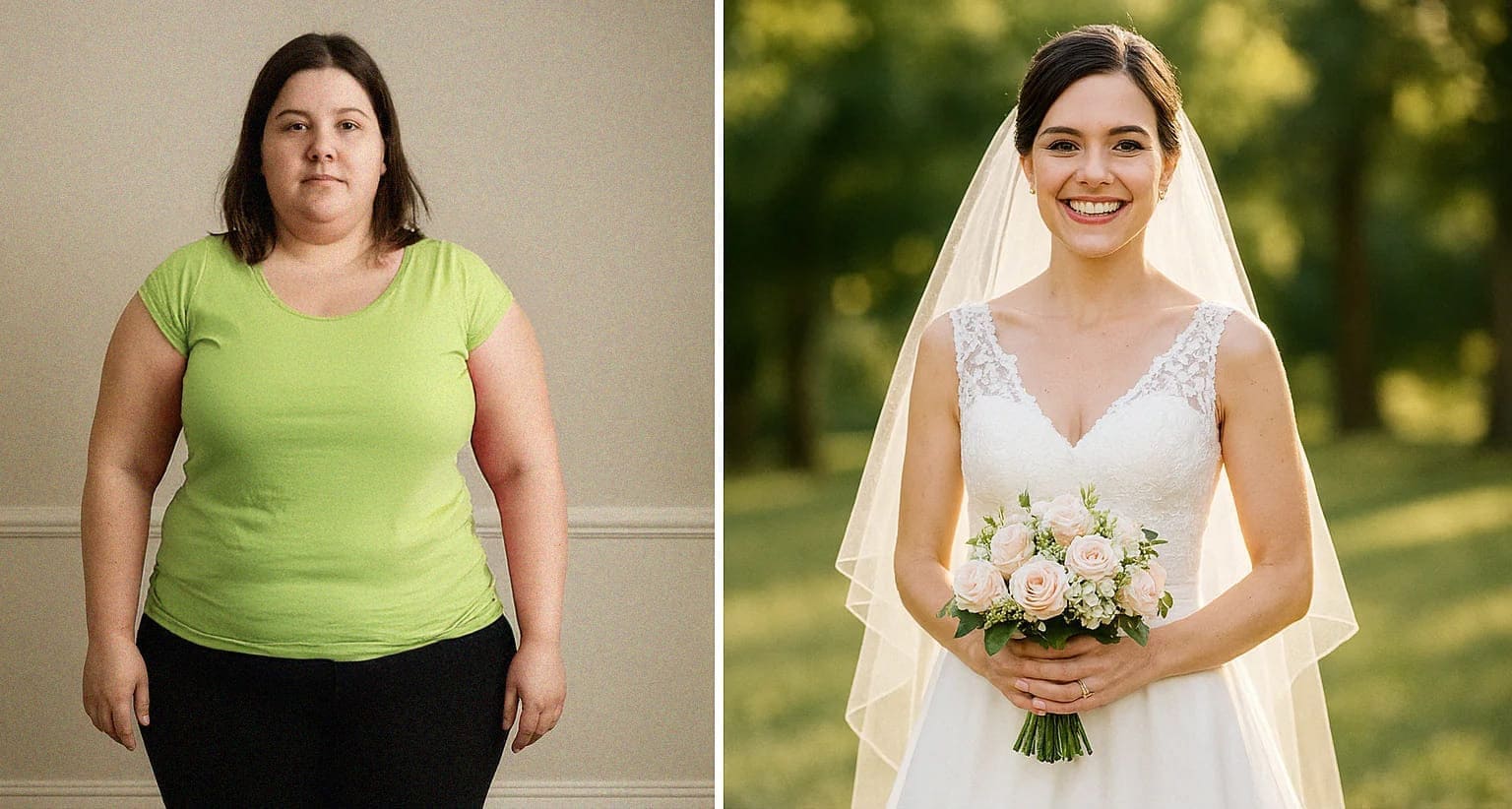 Της κυρίας Λαμπρινής (30 ετών): έπρεπε να αδυνατίσει γρήγορα πριν τον γάμο της και κατάφερε να χάσει 20 κιλά σε τέσσερις μήνες. Την ημέρα του γάμου ένιωθε πιο σίγουρη από ποτέ και ευτυχισμένη.